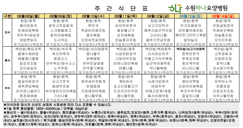 수원하나요양병원 22년 8월 둘째주