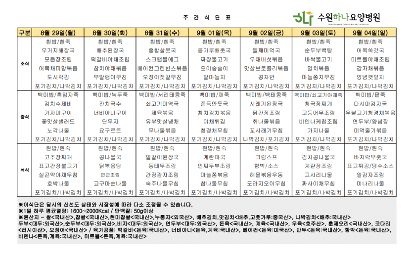 수원하나요양병원 22년 9월 첫째주