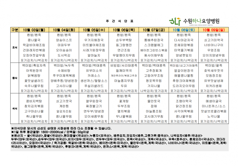 수원하나요양병원 22년 10월 둘째주