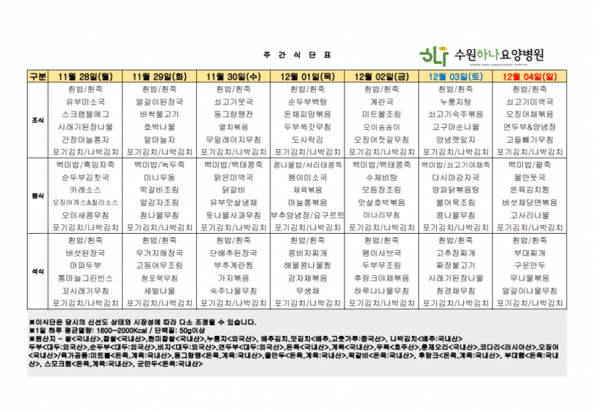 수원하나요양병원 22년 12월 첫째주