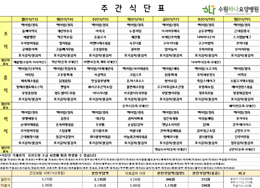 [주간급식표]