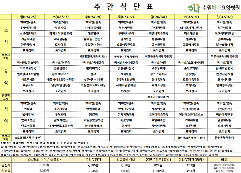 [주간급식표]